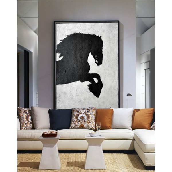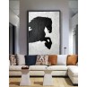 Abstract Painting Extra Handmade Black White Flowers, Acrylic MinimaIlist Painting.