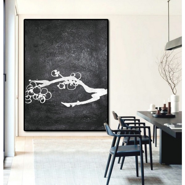 Extra Large Acrylic Painting On Canvas, Minimalist Painting Canvas Art, Black And White Flower Painting, HAND PAINTED Original Art.