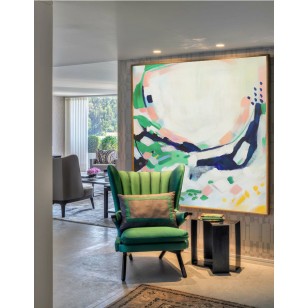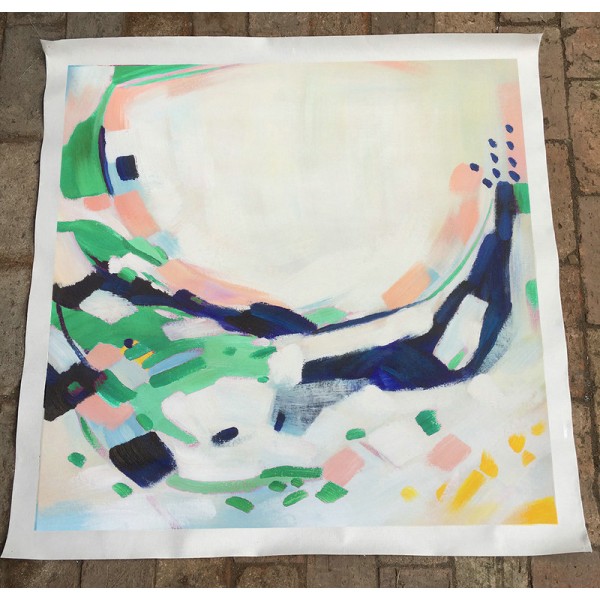 Large Acrylic Painting On Canvas, Abstract Painting Canvas Art Large Wall Art Canvas, Pink Blue Yellow Gray Green- By Biao