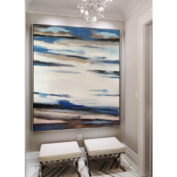 Original Art Extra Large Abstract Painting on Canvas, Landscape Painting Canvas Art, Blue White Brown Black - By Dao